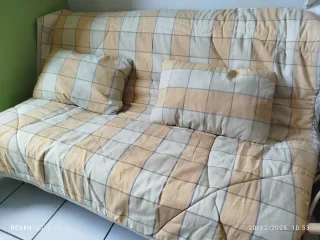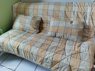 Sofá cama beige y amarillo