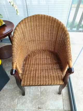 Sillón de mimbre con cojín blanco