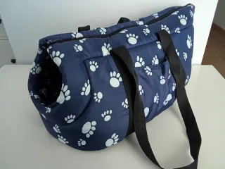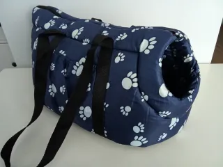 Transportín acolchado para mascotas con un divertido diseño de huellas. - Tejido resistente. - Asas para facilitar el transporte. - Abertura superior para la mascota.