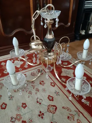 Lámpara de techo de cristal dorada 5 brazos