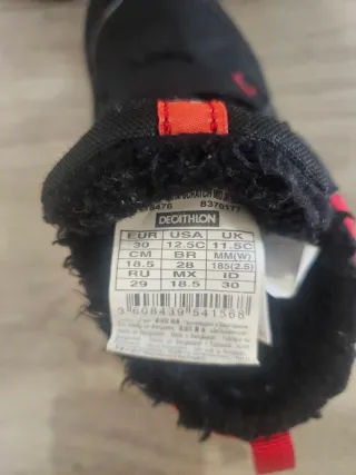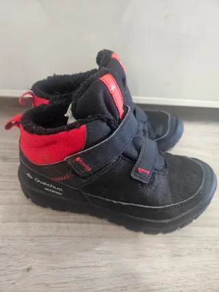 Botas de montaña y nieve para niño, talla 30. Perfectas para mantener los pies secos y calientes en climas fríos y húmedos. - Marca: Quechua - Talla: 30 - Color: Negro y rojo - Cierre: Velcro - Material: Impermeable/waterproof
