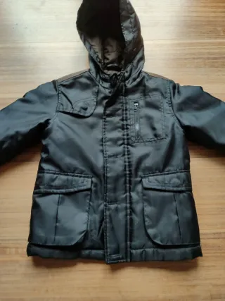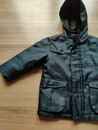 Abrigo negro/marrón con capucha, ideal para protegerse del frío. Presenta un diseño moderno y funcional. - Cierre de cremallera. - Dos bolsillos frontales con solapa. - Detalle de bolsillos en el pecho. - Capucha integrada.
