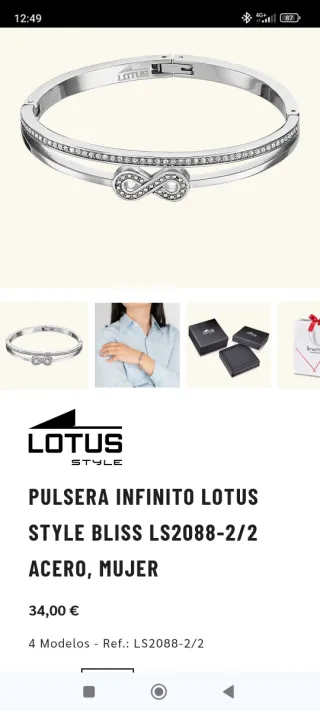Elegante pulsera Lotus Style Bliss con diseño de infinito. - Material: Acero. - Acabado plateado brillante. - Detalle de circonitas en el símbolo de infinito y en la banda superior. - Cierre de seguridad.