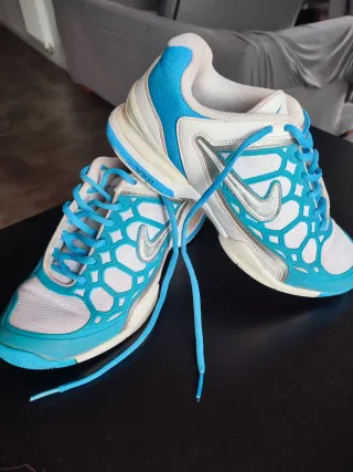 Zapatillas deportivas Nike Zoom en colores azul y blanco. Perfectas para entrenar o para el día a día. - Diseño moderno y ligero. - Cierre con cordones. - Logo de Nike en los laterales.