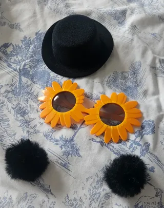 Disfraz unisex estilo Terrifier en talla L. Incluye varios complementos para completar el look. - Diseño con detalles en blanco y negro. - Gafas de girasol - Pequeño sombrero negro - Pompones negros. - Peluca bicolor (negra y blanca).