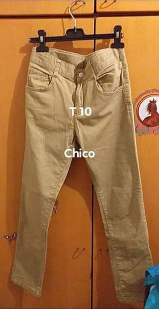 Pantalones de color beige para niño, talla 10. - Diseño moderno. - Cintura con trabillas para cinturón. - Bolsillos delanteros y traseros.