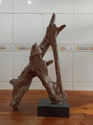Pieza de artesanía decorativa elaborada en madera. - Base de mármol negro. - Diseño orgánico y natural.