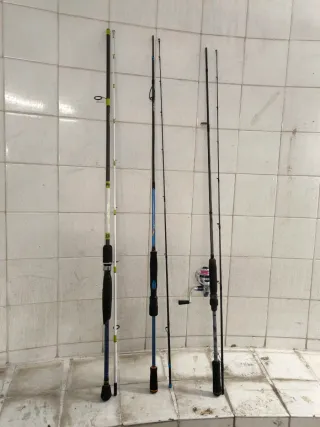 3 cañas eging + carrete Okuma 1000