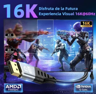 Cable DisplayPort 2.1 de 2 metros, totalmente nuevo y sin usar. ⚡ Ultra alta velocidad hasta 80Gbps 🖥️ Compatible con 16K@60Hz, 8K@120Hz y 4K@240Hz / 165Hz / 144Hz 🎮 Ideal para monitores gaming y tarjetas gráficas modernas 🌈 Compatible con HDR, FreeSync, G-Sync, DSC 1.2a y HDCP 2.2 🔌 Perfecto para sacar el máximo rendimiento a PC gaming y monitores de alta tasa de refresco. 📦 Estado: nuevo, sin usar. 📸 Últimas fotos reales del producto.