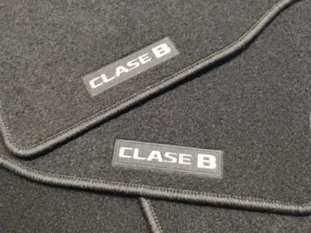 Detalles del productoJuego de 4 Alfombras en Moqueta delanteras y traseras hechas a medida para Mercedes Clase B W245 modelos de 2005 a 2012, contorno en lana cosida con hilo Negro, clips anclajes de fijación originales, nuevas a estrenar.