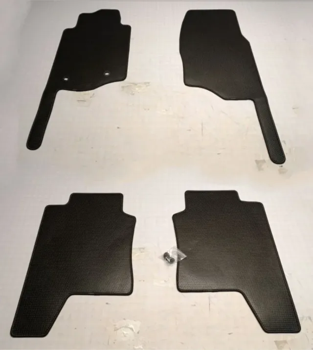Detalles del productoJuego de 4 Alfombras en Goma TPE delanteras y traseras hechas a medida para Mitsubishi Montero V20 Largo 5 Puertas modelos de 1992 a 1998, contorno en terciopelo con la costura en hilo Blanco, clips anclajes de fijación al suelo incluido, nuevas a estrenar.