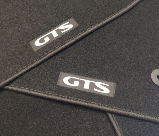 Juego de 4 Alfombras delanteras y traseras en moqueta Negra hechas a medida para Opel Vectra C modelo 2002 a 2009 con Logo GTS, refuerzo en talonera, contorno cosido con hilo lana Negro, clips anclajes de fijación originales, nuevas a estrenar.