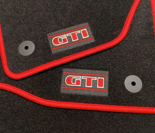 Detalles del productoJuego de 4 Alfombras en Moqueta Negra delanteras y traseras hechas a medida para Volkswagen Golf 8 Golf MK8 Golf VIII, logo GTi, modelos de 2020 en adelante, contorno en lana cosida con hilo Eojo, clips anclajes de fijación incluidos en las alfombras delanteras, nuevas a estrenar.