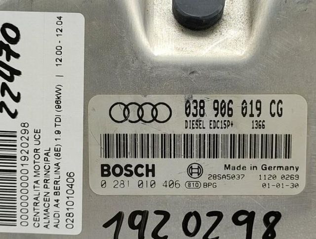 Detalles del productoCentralita motor uce AUDI A4 BERLINA (8E) 1.9 TDI (96KW) Año 2001. Referencia 0281010406. Observaciones 038906019cg. Código interno 1920298.