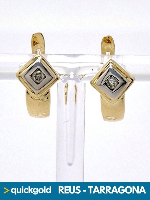 Pendientes rombos, circonitas, oro bicolor de 18k.