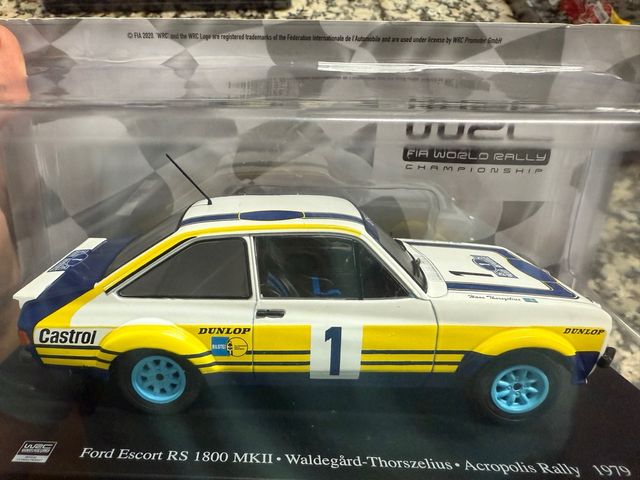 Detalles del productoRéplica del Ford Escort RS 1800 MKII, pilotado por Waldegård-Thorszelius en el Acropolis Rally de 1979.