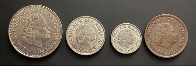 Monedas del mundo. Coleccionismo Lote: 1 Gulden 1968 25 Cent 1980 5 Cent 1980 10 Cent 1972