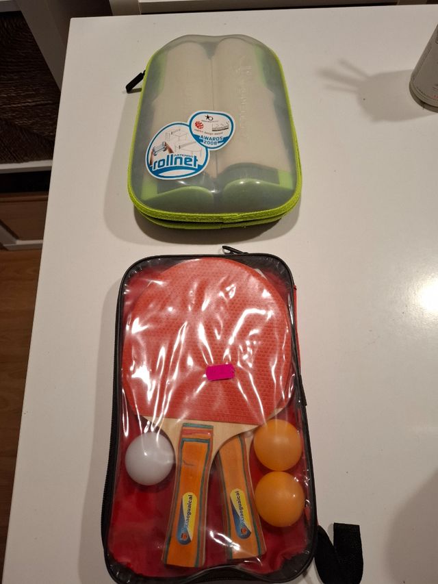 Detalles del productoVendo 1 juego de tenis de mesa en perfecto estado. Cada juego incluye raquetas y pelotas. Uno de los juegos incluye una práctica red portátil. ¡Ideales para principiantes o para disfrutar de una partida rápida!
