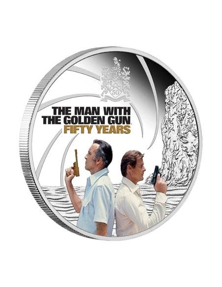 Detalles del productoEl famoso agente del Servicio Secreto Británico James Bond creado por el ex-oficial de inteligencia Ian Fleming en 1953 saltó a la gran pantalla en 1962. Para conmemorar el 50 Aniversario de la película James Bond y el Hombre de la Pistola de Oro (The Man with the golden Gun) la Perth Mint de Australia, bajo la autoridad del Gobierno de Tuvalu acuña una nueva moneda en plata pura Proof