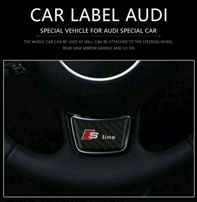 Detalles del producto1 pegatina engomada de carbono con logotipo Sline para volante Audi.