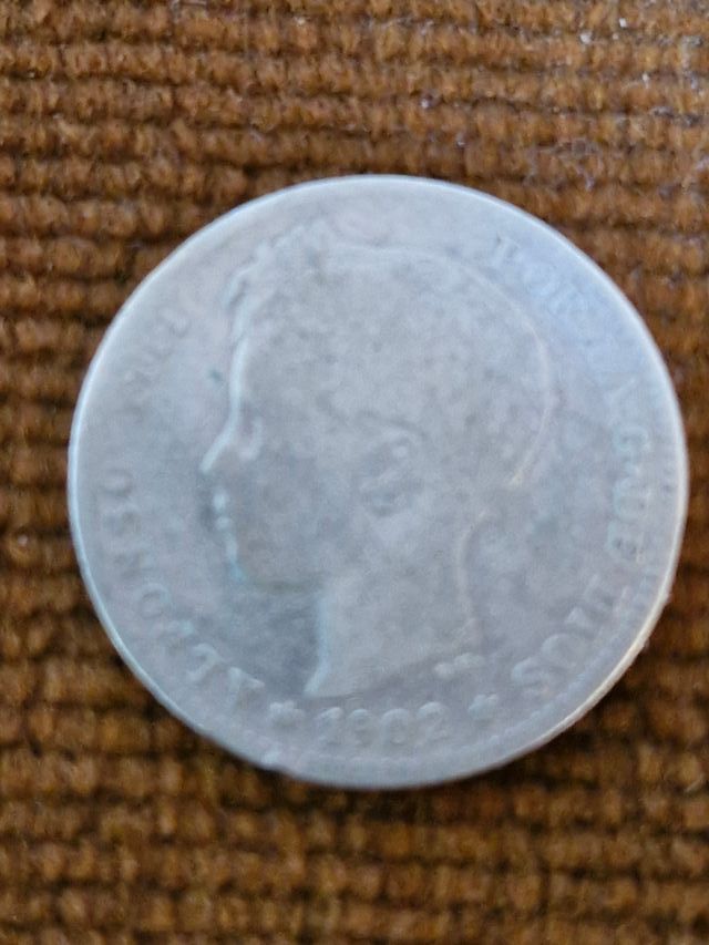Detalles del productoMoneda de plata de 1 peseta de Alfonso XIII, año 1902. Estrellas no visibles. Diámetro: 23 mm Peso: 4,78 gramos. Entrega en mano en Alcorcón o envío a través de wallapop.
