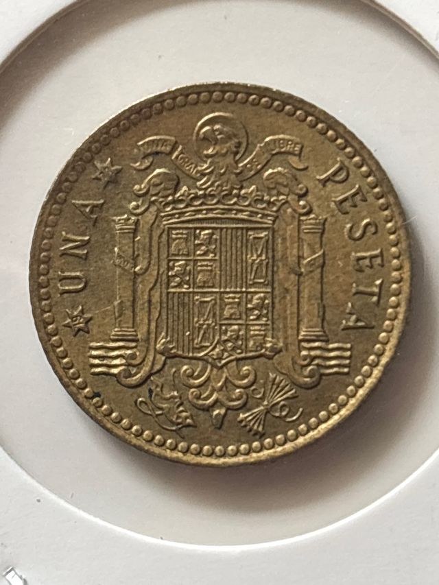Moneda de 1 peseta de España. Diseño con escudo. - Inscripción UNA PESETA