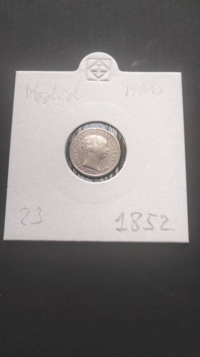 Detalles del productoMoneda de 1 Real de Isabel II acuñada en Madrid en el año 1852. Plata.