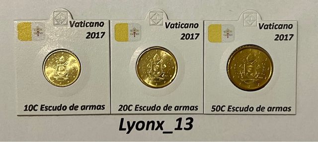Detalles del productoMonedas de 10, 20 y 50 céntimos Escudo de armas del Papa Francisco sacadas de cartera oficial de 🇻🇦 Vaticano 2017.