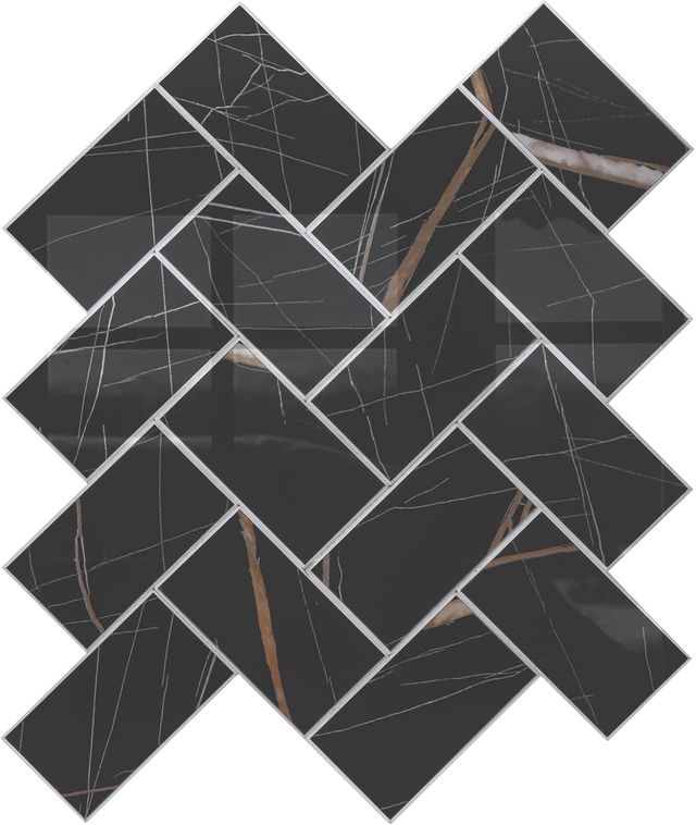 Pack de 10 baldosas adhesivas con un diseño moderno y elegante. - Material: Metal -B0CXNJZRF5 - Medidas: 61 cm x 25 cm - Grosor: 0.4 cm