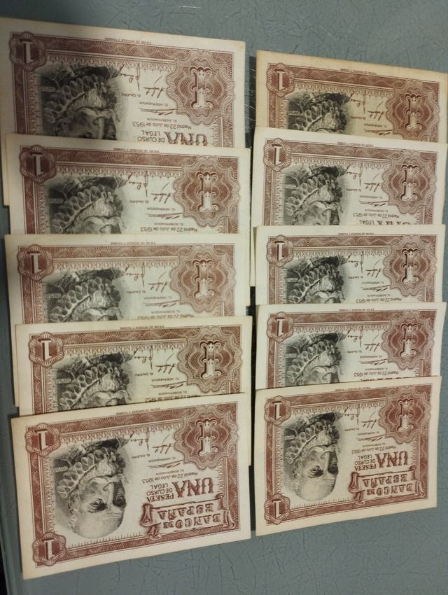 Billete de 1 peseta de 1953. 10 unidades España. Tal y como está en las fotos. Sin devolucion