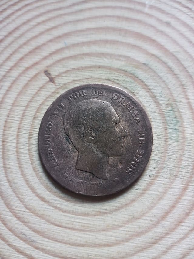 Moneda de 10 céntimos de Alfonso XII. - Año 1879 OM - Diseño con el perfil del rey Alfonso XII. - Inscripción Alfonso XII por la gracia de Dios.