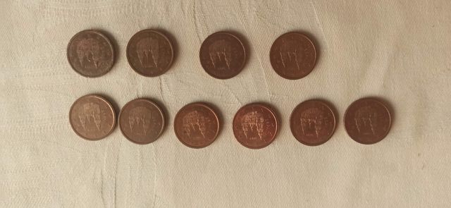 Detalles del productoSe venden diez monedas de dos céntimos de euro españolas. Son monedas de colección, en buen estado de conservación.