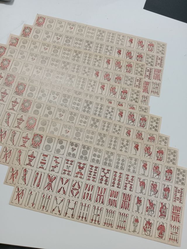 Detalles del productoDiez pliegos de naipes sin cortar, listos para ser recortados y utilizados.