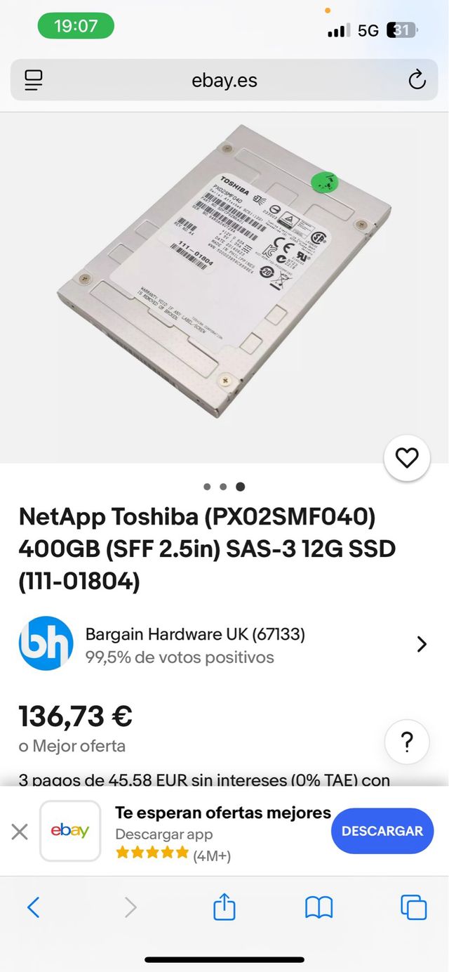 Se vende unidad de estado sólido NetApp Toshiba PX02SMF040 de 400GB