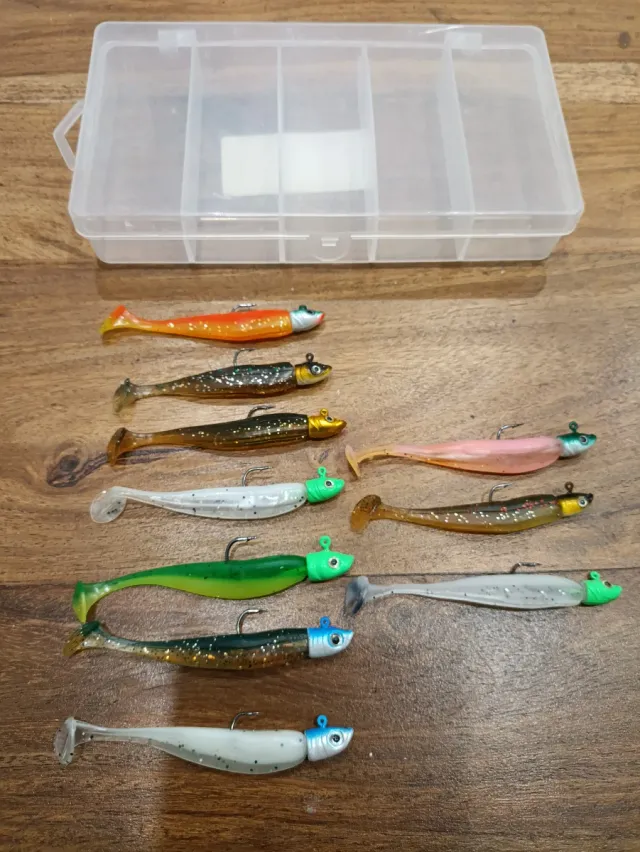 Detalles del productoLote de vinilos para pesca de diferentes colores y diseños. Perfectos para atraer a diversas especies de peces.
