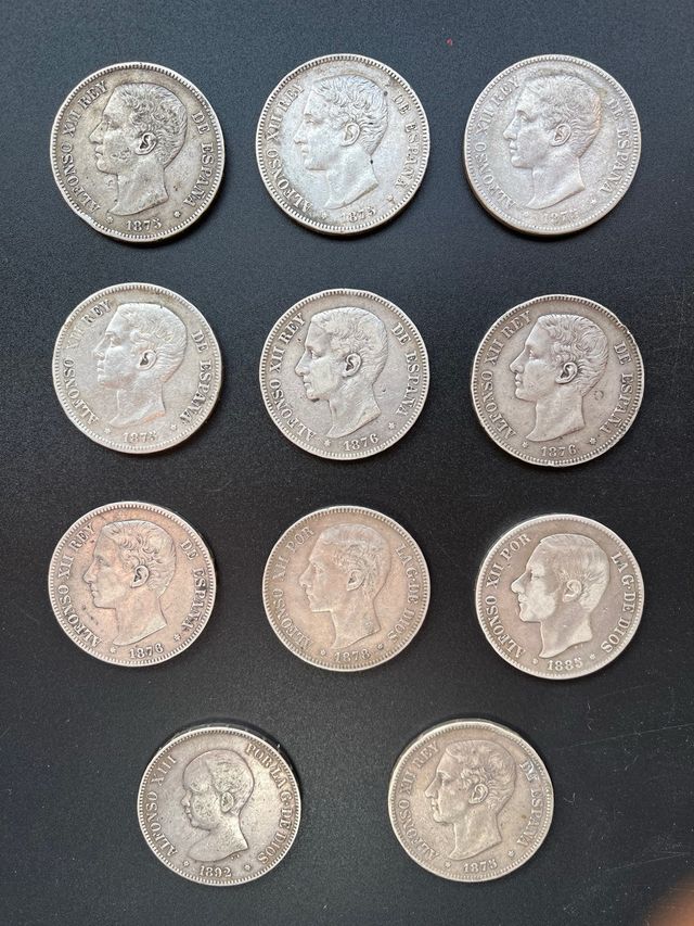 11 monedas de 5 pesetas de plata Alfonso XII-XIII