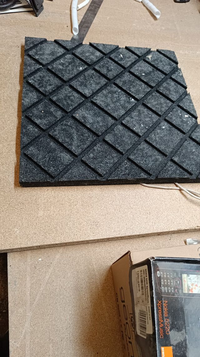 Detalles del productoPack de once unidades de suelo de caucho con diseño de rombos. Ideal para proteger superficies y mejorar el agarre.