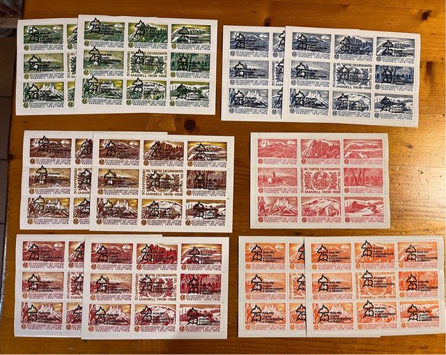 Lote de 11 viñetas conmemorativas del 50 aniversario del Centre Excursionista de Sabadell (1908-1958).