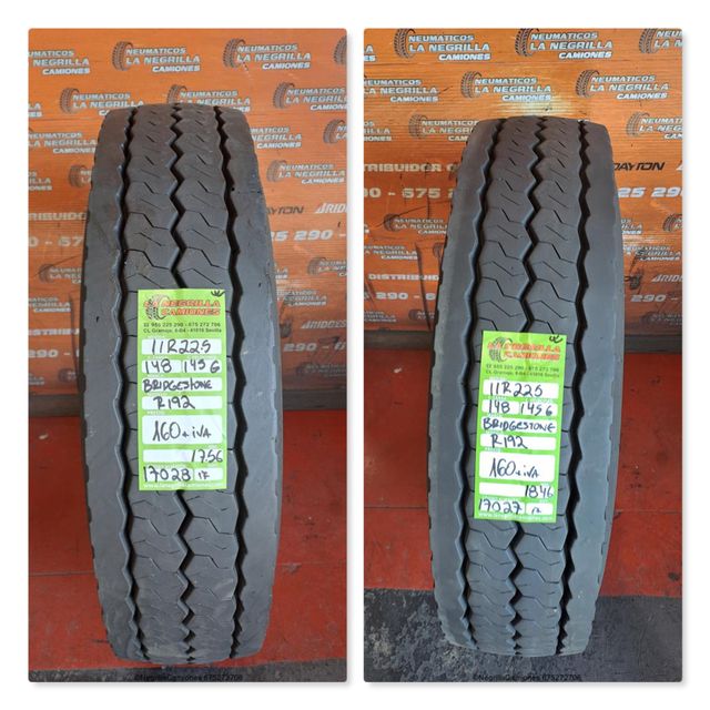 Detalles del productoPrecio final de 2 neumáticos 387€ .marca: BRIDGESTONE modelo: R 192 de segundo uso. precio con iva y porte gratis toda península .el juego de 2 , se venden solamente junto. Más info. whatsapp 675272706. tenemos neumaticos camion,agricolas,industriales, tractor,maquinaria; TODOS ELLOS GARANTIZADOS!!, estamos en calle gramaje no. 30, sevilla 41016
