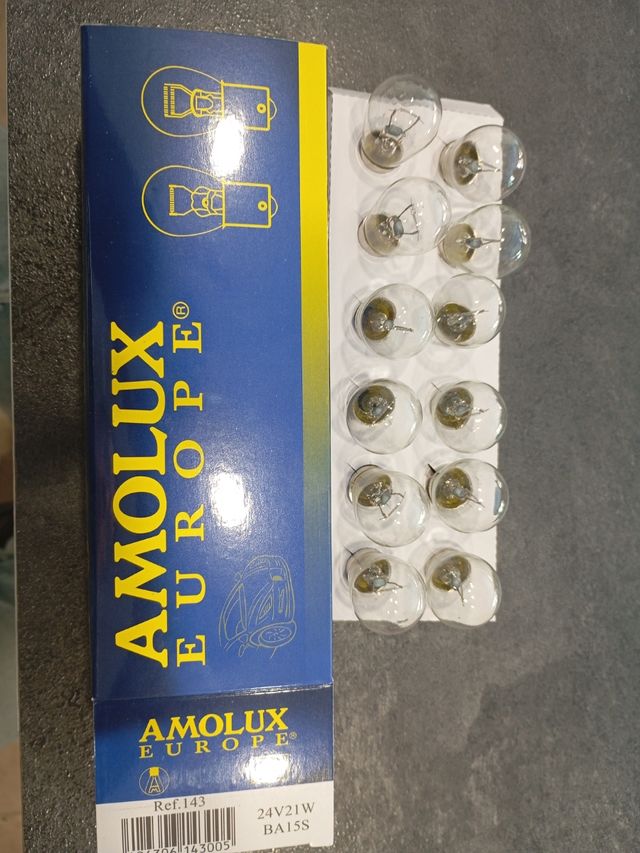 Caja de 12 bombillas marca Amolux para camión. Tipo de bombilla 24V21W Tipo de zócalo BA15S