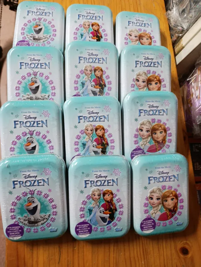 Detalles del productoLote de 12 cajas metálicas de la película Frozen. Cada caja contiene 24 cromos.