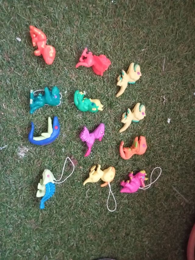 Detalles del productoColeccion de 12 pequeños dinosaurios de Kinder, ideales para niños. Son de colores brillantes y alegres.