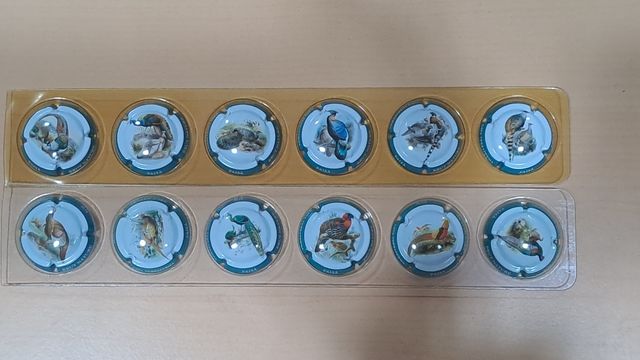 Preciosa colección de 12 chapas de cava con motivos de faisanes.