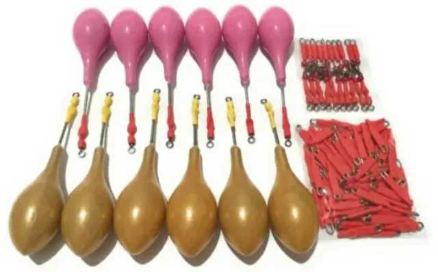 Detalles del productoLote pesca🎣, 12 plomos de pesca surfcasting, de 100 gramos termo plastificados de Portugués, 6 color rosa + 6 color dorado + 50 enganches rápidos de varilla Acero inoxidable de 1,2mm extra fuertes, diámetro 14mm x 3mm, color rojo + 10 urfes de varilla Acero inoxidable con casquillos de 7 centÃmetros de largo, color rojo.