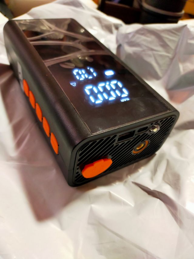 Portátil te quiero para todo tipo de vehículos coches motos furgonetas de baterías de hasta cilindradas de 3000 gasolina y 2500 diesel arranca el coche en caso de avería y también inflar los neumáticos con regulación de presión de aire digital de interna y salida USB y tipo C