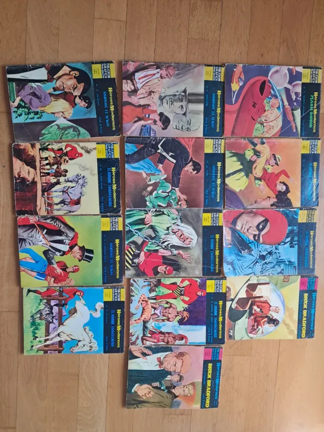 Lote de 13 tebeos antiguos de la colección Héroes Modernos, publicados en el año 1960. - Flash Gordon - Mandrake el Mago - El Hombre Enmascarado - Brick Bradford