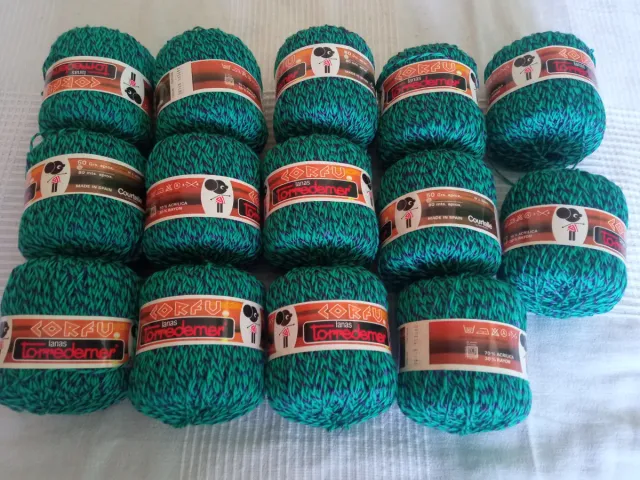 15 Ovillos. de lana en tonos verdes y negros, perfectos para tus proyectos de tejido.