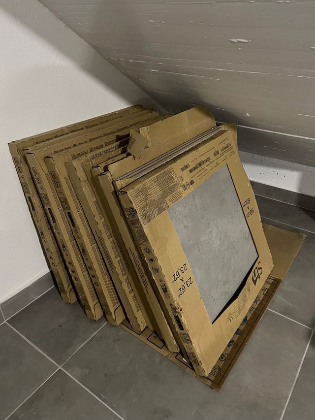 Detalles del productoDisponibles 14 metros cuadrados de baldosas de porcelanico grises para suelo. Son de apariencia moderna y elegante.