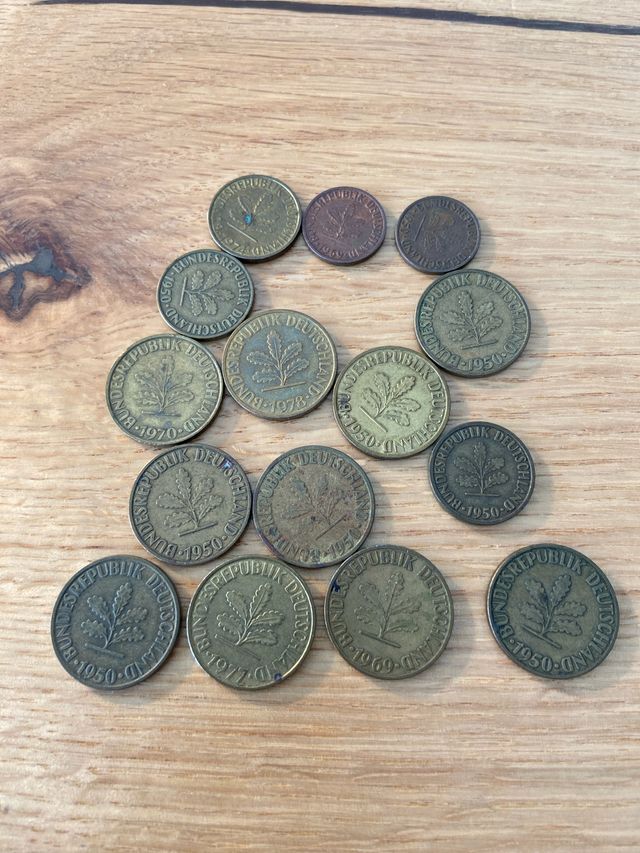 Detalles del productoConjunto de 15 monedas antiguas de la República Federal Alemana.
