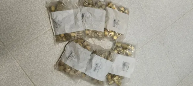Lote de 150 racores Marsella de latón para fontanería. - Racores tipo Marsella. - Medida de 1/2 pulgada. - Fabricados en latón.
